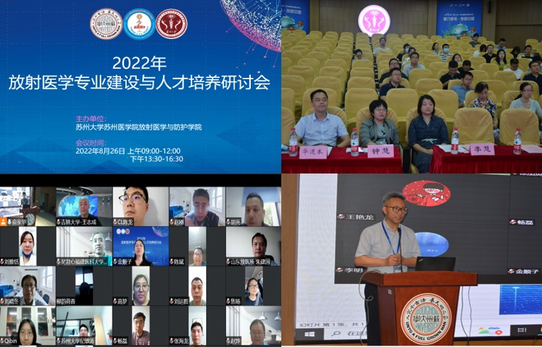 2022年8月26日,首届放射医学专业建设与人才培养研讨会在苏州大学独墅湖校区医学楼四楼报告厅召开,本次研讨会采用了线上线下结合的方式。出席本次会议的有吉林大学公共卫生学院放射医学系主任金顺子教授、温州医科大学公共卫生与管理学院院长刘晓冬教授、山东第一医科大学预防医学科学学院常务副院长朱建国教授、福建医科大学肿瘤临床医学院放疗科主任吴君心教授、新乡医学院第四临床学院副院长白国强教授、安徽医科大学基础医学院赵烨副教授、包头医学院医学技术与麻醉学院放射医学教研室主任张竹强教授、苏州大学教务处副处长李慧、苏州医学院副院长钟慧、放射医学与防护学院院长柴之芳院士,还有来自南京医科大学等9所开设放射医学专业的高校教师代表120余人参加了本次研讨会。本次活动由放射医学与防护学院副院长周光明教授主持。