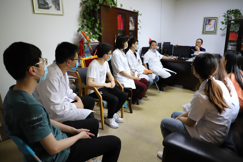 2020年6月1日,苏州大学2016级核医学专业六名实习生首次下点浙江省肿瘤医院,为尽快让实习生适应新的环境、新的生活模式,以最佳状态融入科室工作,浙江省肿瘤医院核医学科李林法主任高度重视,并于6月3日下午组织召开了一场师生见面交流会。科室主任李林法、副主任庞伟强、龙斌,教学秘书与干事以及部分带教老师骨干参加了此次交流会。