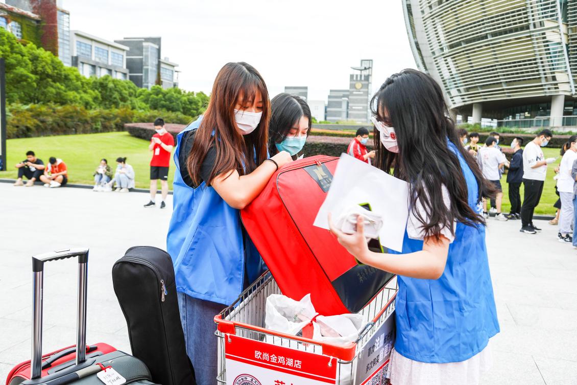 志愿者们向新生们宣传讲解了“生活中的辐射”、“辐射灭菌”、“放射性核素的医学应用”等科普知识,帮助同学们了解“放射医学”专业、正确的认识“辐射就在我身边”。国重室科普基地吉祥物“氟氟”、“铀铀”形象人偶也纷纷亮相,伴随《放医DISCO》旋律舞蹈,吸引了新生们纷纷合影,志愿者们趁机向同学们普及了放射性核素氟-18在PET-CT医疗诊断中的应用,以及放射性核素铀在核电核武器等领域的重要作用。神奇的低氘水也搬来了现场,志愿者们向同学们普及了元素氘的特点,以及低氘水的用途,在帮助同学们解渴的同时,了解元素的奥秘。还有些志愿者们也纷纷加入送新生的队伍,主动帮助同学们搬运行李,发挥志愿服务带头作用。