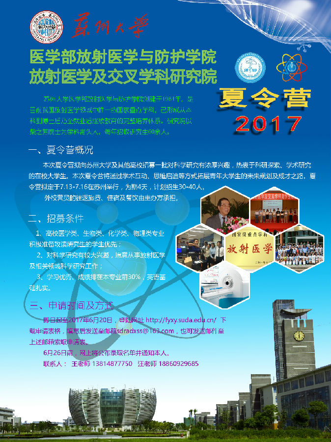 放射医学与防护学院2017年暑期夏令营开始报名啦!