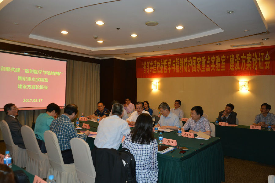 2017年5月17日,江苏省科技厅组织专家组在南京江苏省会议中心对我校省部共建“放射医学与辐射防护”国家重点实验室的建设计划进行了可行性论证。江苏省科技厅邀请的论证组专家有南京大学陈洪渊院士、南京航空航天大学机械结构力学及控制国家重点实验室主任熊克教授、军事医学科学院国家"973"项目首席科学家周平坤教授、东南大学生物科学与医学工程学院院长、生物电子学国家重点实验室主任、长江学者、杰青获得者顾忠泽教授、以及山东省肿瘤医院放疗科李建彬主任等五位。参加会议的江苏省科学技术厅领导有蒋跃建副厅长、景茂副巡视员、项目管理员尤琛辉博士;参加会议的苏州大学领导有路建美副校长、科学技术研究部科学技术处郁秋亚处长、苏州大学医学部龙亚秋副主任。会议由省科技厅景茂主持。