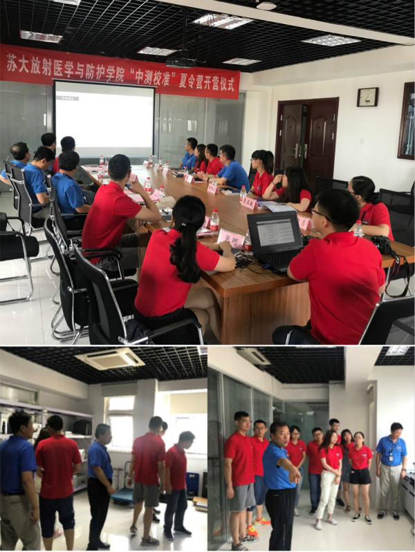 7月16日上午开营仪式上,首先由中测校准张副总经理对公司进行介绍,中测校准是面向全国专业从事仪器仪表、医疗设备计量检校与质控检测、放射卫生检测与评价、医疗器械注册检验的,具备独立法人资格的第三方检校机构;彭蓉老师致辞中,介绍了苏大放射医学与防护及医学工程专业特点,希望发挥双方各自专业领域优势,整合资源,在实践、教学、科研等方面开展战略谋划和深度合作。随后张珂同学做了题为“放射之于何方,不畏渺茫照见希望”的发言,介绍了苏大放医学院的放射医学专业;李文翔同学做题为“服务于医学——理工科研究生眼中的放医学院”的发言,介绍了新兴的交叉学科生物医学工程专业。随后,营员们参观中测公司的实验室、设备室及相关工作场所。参观期间,张总就公司资质、业务范围、能力水平及检测队伍作了简要汇报,同时还就仪器的测量标准、校准规范和开展的项目等进行了介绍,气场活跃,氛围轻松。