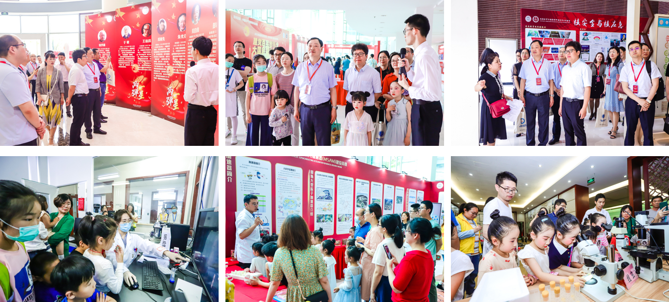 开幕式后,大家一同参观了国重室“建党百年创伟业,大国底气从核来”主题展,本次展览包含“初心、使命”—“两弹一星”功勋科学家事迹展、“传承、发展—核技术应用展、“守护、展望”—核事故应急展等三个主题内容。融合了“两弹一星”功勋科学家画展等,通过文字、图片、视频、实物等形式全面展示了在中国共产党的领导下,核科学技术的创新发展之路,从“两弹一艇”到“华龙一号”,我国核工业从无到有、从小到大,实现了一系列自主重大跨越,核科学技术系列成果彰显了大国底气。同时,家长和孩子们还参与了“走进国重室”互动体验活动。“探寻辐射与人体的奥秘”、“解密神奇的实验王国”、“小鼠拍照-核技术成像”,每一个区域都有趣味互动实验环节,小朋友们亲眼见到了细胞、小鼠、果蝇、线虫等实验材料,激发了科研的兴趣,在实验室哥哥姐姐们的指导下争相自己动手,留下了美好的科学回忆。