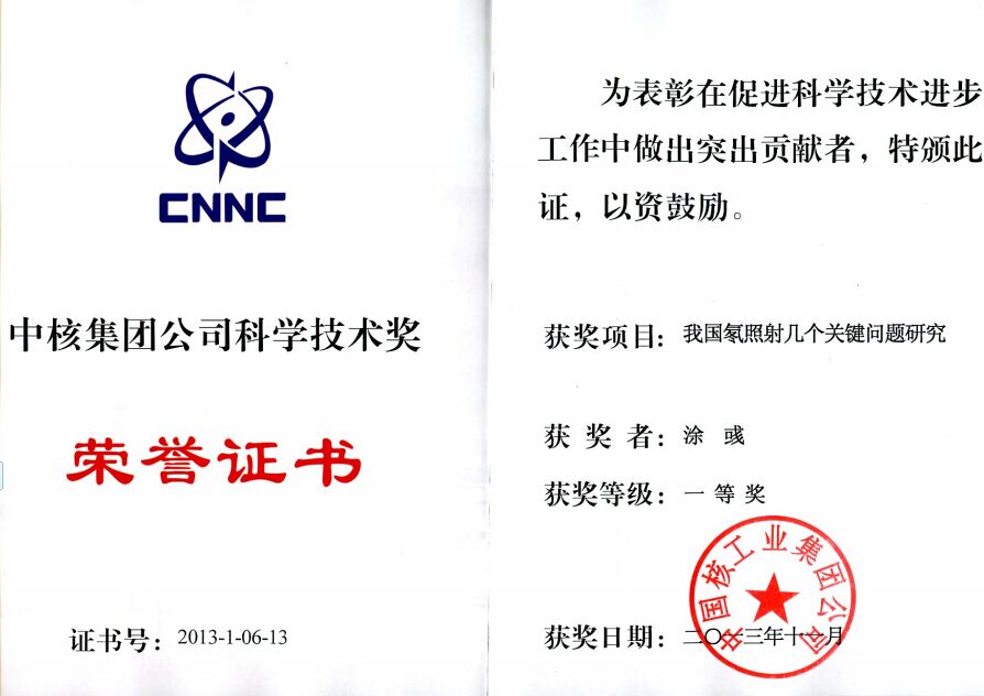中核集团公司科学技术一等奖
