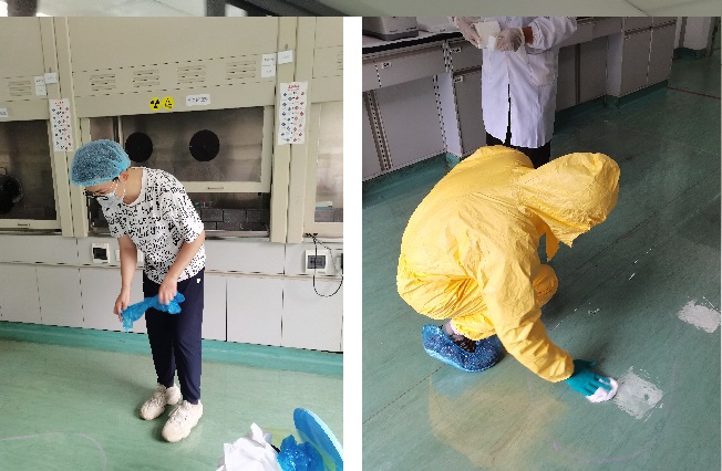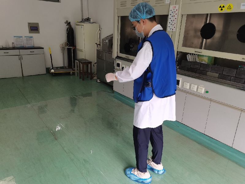 污染的衣物被处理,污染的地面由工作人员进行去污处理,并通过便携式表面沾污仪与手足表面沾污仪检测,确定去污成功。