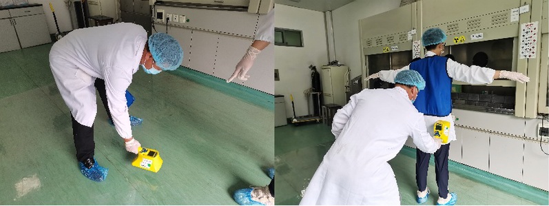演练首先模拟了放射性核素实验过程中发生核素容器掉落,造成放射性核素125I发生地面和衣物污染。