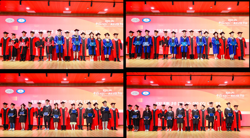 接着,学位委员会委员为全体毕业生拨穗并授予学位证书,当帽上的流苏拨过,毕业生们的放医求学岁月都定格在了一张张珍贵的照片中。