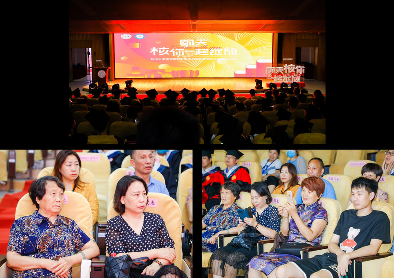 6月21日,苏州大学医学部放射医学与防护学院2021届毕业生毕业典礼暨学位授予仪式在医学楼四楼报告厅隆重举行。院党委书记王成奎、常务副院长曹建平、副院长周光明,院学位分委员会委员,全体毕业研究生导师、本科生任课老师,辅导员、2021届毕业生、毕业生家长代表等出席毕业典礼。典礼由朱一丹老师主持。