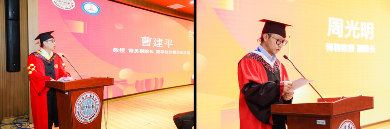 院学位分委员会主席曹建平教授、学院副院长周光明教授分别宣读了2021届毕业研究生、本科生名单及博士、硕士、学士学位授予名单。