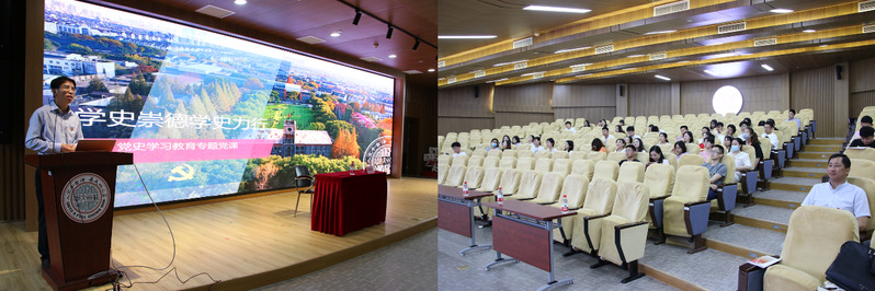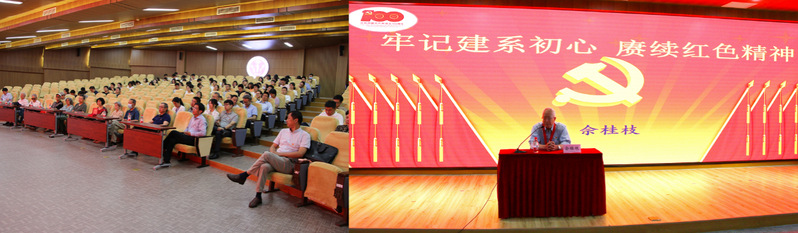 随后,佘桂枝以“牢记建系使命,赓续红色精神”为主题为全体师生党员上了一堂生动的党课。佘桂枝老书记从中华人民共和国成立初期多次受到核威胁的情况下毛泽东主席果断决定研制原子弹的历史讲起,为大家讲述了建系的历史、放射医学专业内涵的发展史以及肩负“两弹一星”医疗救治辐射防护保障的历史使命,学院从建立以来为我国核工业、全国放射肿瘤和核医学培养了一大批专业人才。佘老书记代表老一辈的放医人对学院的现任领导班子表示感谢,希望学院能够赓续红色精神,继续前行创造更加辉煌的未来。王成奎指出,余老书记的党课值得全体师生党员认真学习,青年一辈党员要以老一辈党员为榜样,以党史学习教育为契机,学习老前辈的优秀品质,把老一辈的优良传统带入学习工作中,凝聚成前行的磅礴动力。