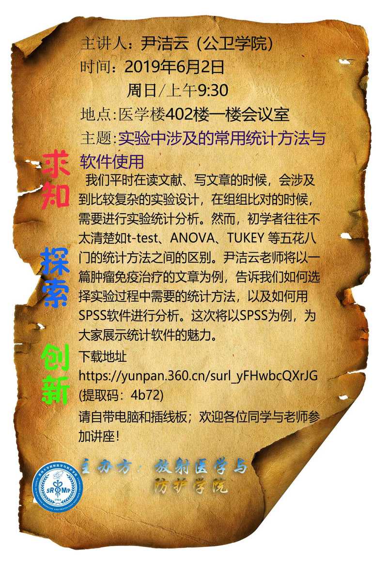 放医学院2019年春季第二课堂预告(实验中涉及的常用统计方法与软件使用)