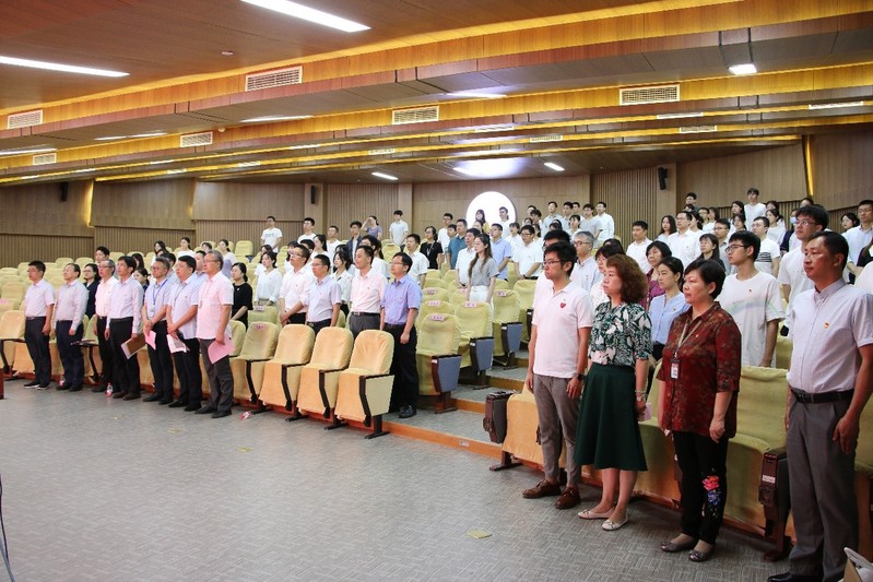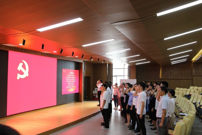 最后,学院新党员集中宣誓、老党员重温入党誓词。百年风雨沧桑,中国共产党不断砥砺前行,带领中国人民实现从站起来、到富起来、强起来的伟大史诗。放射医学与防护学院党委将传承建党精神、弘扬光荣传统,坚守“为党育人,为国育才”的育人初心,发扬“两弹一星”精神,始终坚定不移跟党走,为立德树人、服务学校高质量发展作出新的历史性贡献!
