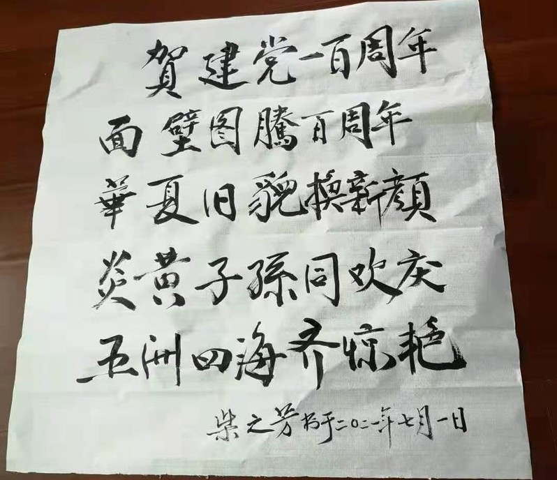 在隆重庆祝中国共产党成立100周年之际,学院院长、中国科学院院士柴之芳欣然创作题写《贺建党一百周年》诗一首:“面壁图腾百周年,华夏旧貌换新颜;炎黄子孙同欢庆,五洲四海齐惊艳。”作为一名奋斗在科研战线的老党员,柴之芳院长始终身体力行,践行志愿书中表达的“起到党员的模范带头作用,多出成果,多出人才,尽力攀登事迹科技高峰”、为党育人、为国育才的初心和使命,以自身的行动书写了中国共产党人的精神谱系和政治品格,是学院师生共同学习的标杆和示范。