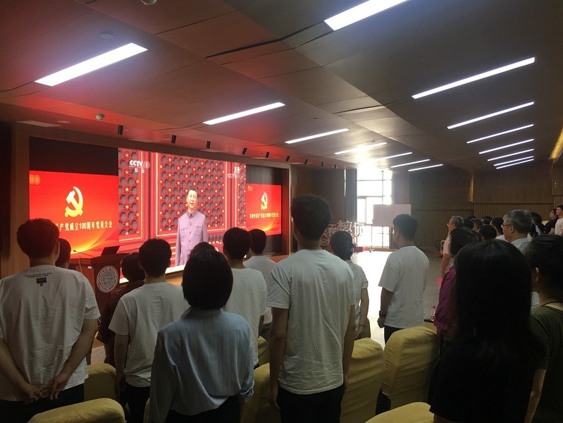 为庆祝中国共产党成立100周年,7月1日,放射医学与防护学院组织全体师生党员收看习近平总书记在庆祝中国共产党成立100周年大会上的重要讲话并召开党员大会。学院党委书记王成奎,学院常务副院长曹建平,副院长周光明,学院党委委员许玉杰,以及学院各支部师生党员一同参加此次会议,会议由王成奎书记主持。