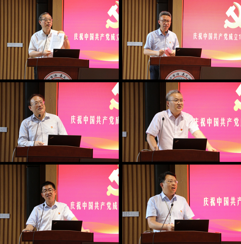 曹建平常务副院长、周光明副院长、许玉杰教授、朱本兴老师、朱巍老师、孙亮老师和王成奎书记分别重温了自己的入党志愿书,与大家分享了入党初衷和作为一名党员的心路历程。当年的志愿如今仍然铭记于心。作为一名党龄30年的老党员,曹建平常务副院长仍然会被老同学在退休之际仍坚持入党的坚定初心所感动,“如果党组织不批准的话,我决不气馁,继续接受党组织的考验,认真学习提高自己的政治素质,做好自己的本职工作,全心全意为人民服务。”周光明副院长回顾了自己的求学科研之路,党为科技创新指明了战略方向,创造了良好的学习科研环境,我国的科技事业取了一个又一个重大成就。“坚定执行党和国家的各项方针政策,严格履行党员的义务,做好本职工作,争取做出有较高价值和国际水平的科研成果,为社会主义的建设贡献力量。”在日本留学期间,许玉杰教授仍坚持写思想汇报,不忘科技报国的理想信念。朱本兴老师重温了“努力学习、积极工作,在自身的岗位上发挥着党员表率作用” 的内容。朱巍老师表示在中国共产党的培养下从一名学生成长为人民教师,入党不是为了个人光彩是要做自己力所能及之事,要为国家和人民做些贡献。在日常的工作和生活中感悟到中国共产党的智慧和引领,是孙亮老师入党以来奋战教学一线孜孜不倦的精神动力。“作为一名党员,必须承担起带头人的责任,用自己的行动同人民交流,用自己的思想同人民交流。切实起到影响教育的作用,共同携手致力于光荣的社会主义建设事业。”当年的誓言是王成奎书记深耕教育多年不断践行的初心和使命。