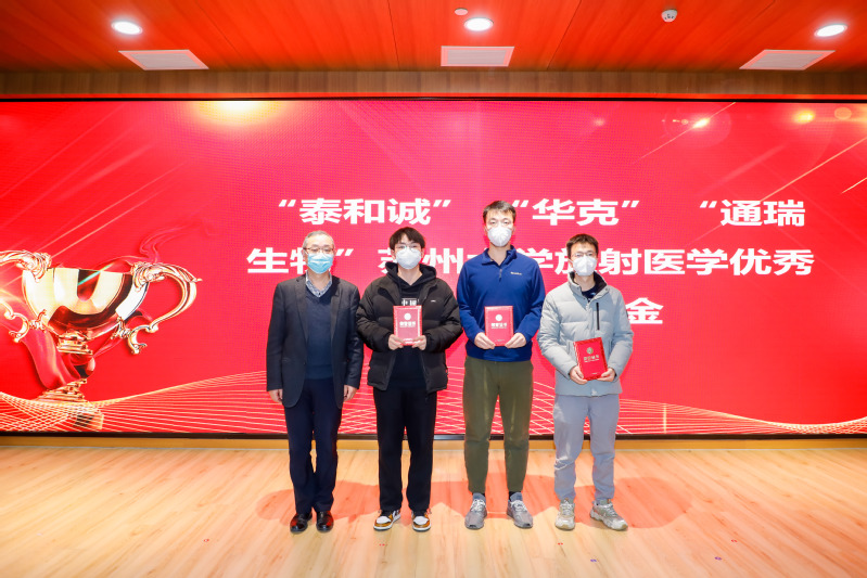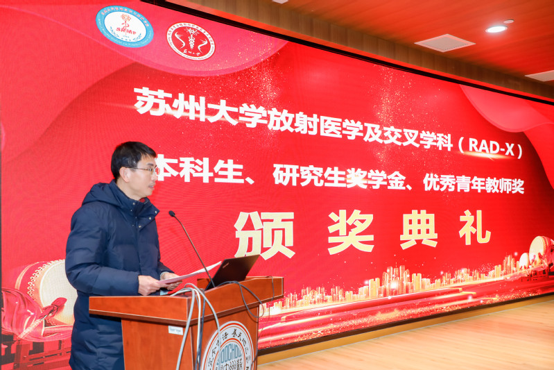 202212月14日下午苏州大学放射医学及交叉学科(RAD-X本科生、研究生奖学金、优秀青年教师奖颁奖典礼独墅湖校区四楼学术报告厅成功举行。本次颁奖典礼采用线上线下结合的方式,苏州医学院学生工作办公室副主任施建亚出席典礼。美中嘉和集团北京项目筹建办副总经理赵静先,江苏华益科技有限公司副总经理周业松,好医生药业集团人力资源部总监李远平,华克医疗科技股份公司总经理刘爱娣,浙江韩情生物科技有限公司总经理汪恩锋,通瑞生物医药科技有限公司CEO钟文晶等于线上参会。放射医学与防护学院院长柴之芳院士,常务副院长曹建平,副院长周光明和获奖师生代表共同参加典礼颁奖典礼由院党委书记王成奎主持。