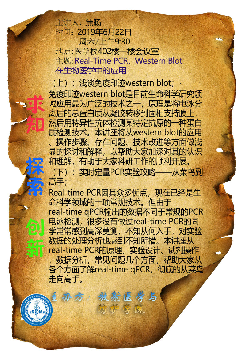 放医学院2019年春季第二课堂预告(Real-Time PCR Western Blot)