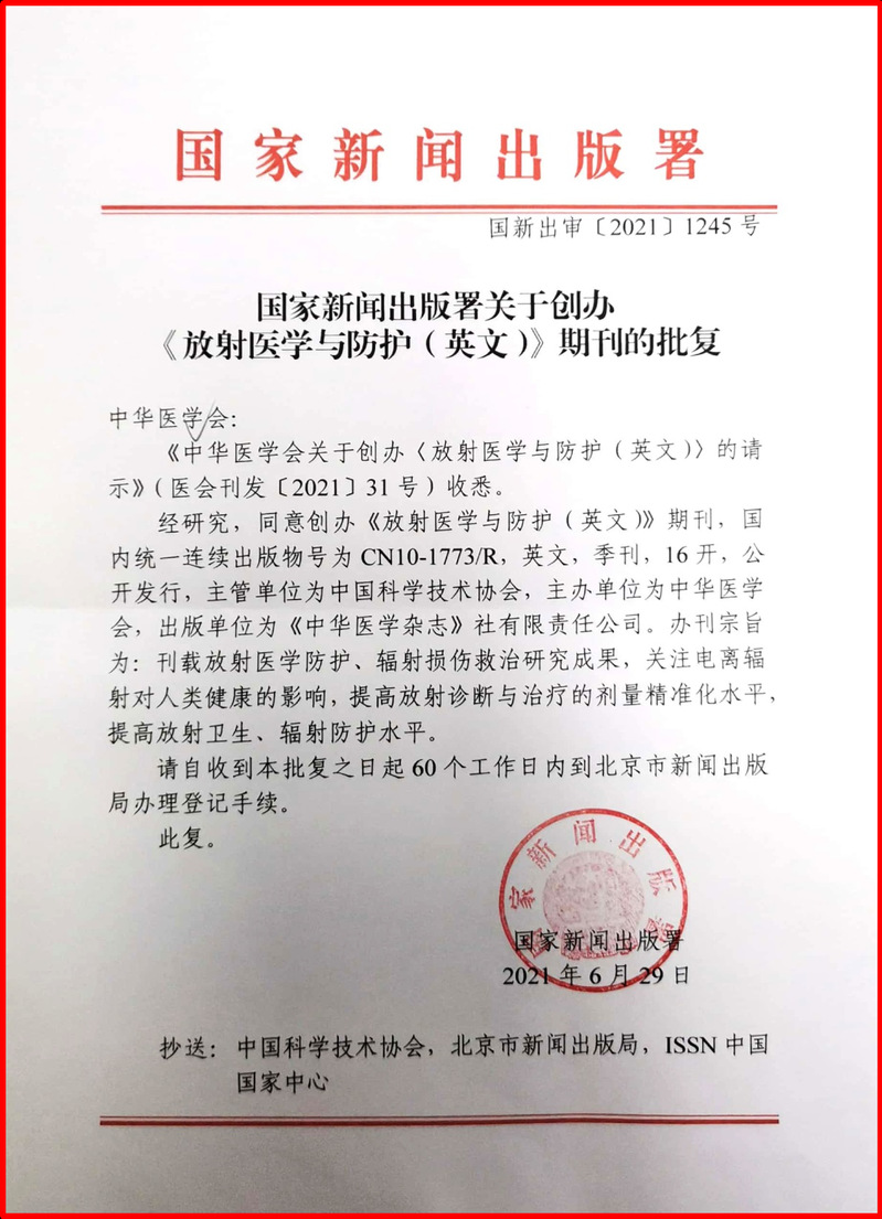 喜报!”Radiation Medicine and Protection”英文刊获国家新闻出版署创刊批复