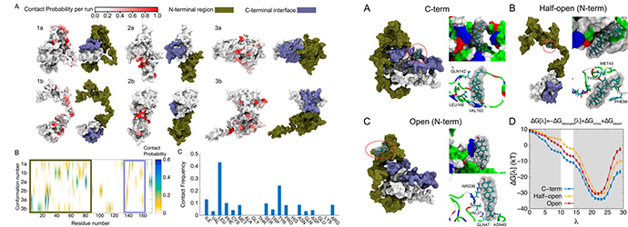 白内障是导致视力障碍的主要原因,其源于眼晶状体中晶状体蛋白的错误折叠和聚集。尽管白内障在世界范围内的普遍性和严重性,但是对于错误折叠的晶状体蛋白聚集成白内障的详细机制仍然不明确。最近,有体外和体内实验证明,在人和动物眼中发现的类固醇类化合物羊毛甾醇(lanosterol)可以防止、并逆转白内障的形成。受此启发,杨再兴副教授等人利用全原子分子动力学模拟(MD)自由能微扰(FEP)研究了羊毛甾醇对HgD-晶状体蛋白聚集体形成的预防行为。研究结果揭示了羊毛甾醇优先结合HgD-晶状体疏水的二聚化界面,特别是对结构化的C-末端具有很强的亲和力。最后,还比较了羊毛甾醇与胆固醇的结合自由能,并讨论了类固醇的分子几何结构与其结合亲和力的相关性。