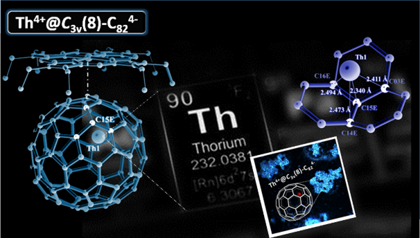 ABSTRACT: Endohedral metallofullerenes (EMFs) containing lanthanides have been intensively studied in recent years. By contrast, actinide endohedral fullerenes remain largely unexplored. Herein, for the first time, we report the single crystal structure and full characterization of an actinide endohedral fullerene, Th@C82, which exhibits remarkably different electronic and spectroscopic properties compared to those of lanthanide EMFs. Single crystal X-ray crystallography unambiguously established the molecular structure as Th@C3v(8)-C82. Combined experimental and theoretical studies reveal that Th@C3v(8)-C82is the first example of an isolated monometallofullerene with four electrons transferred from the metal to the cage, with a surprisingly large electrochemical bandgap of 1.51 eV. Moreover, Th@C3v(8)-C82displays a strong vibrationally coupled photoluminescence signal in the visible region, an extremely rare feature for both fullerenes and thorium compounds.