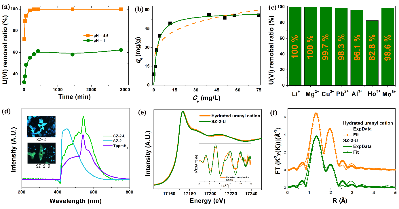 图2. SZ-2化合物铀酰去除效果测试及机理研究