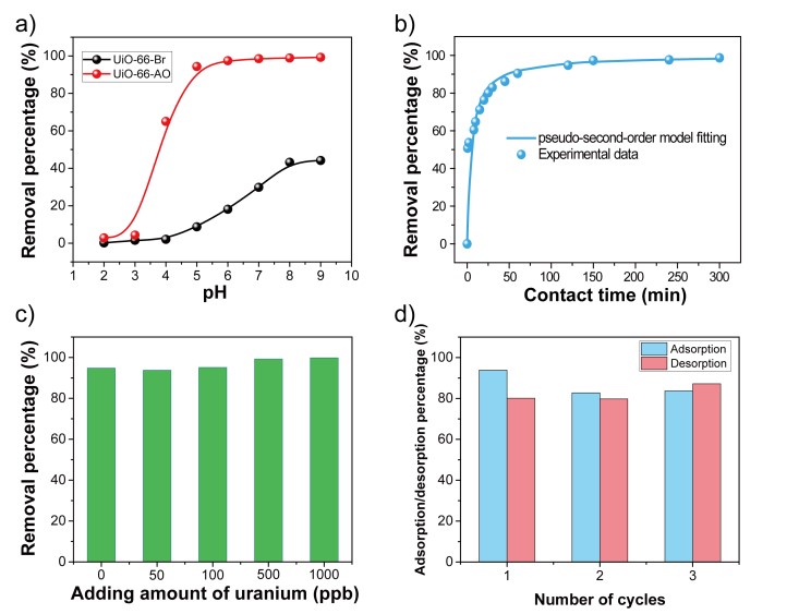 图2. UiO-66-AO在不同条件下对铀的吸附