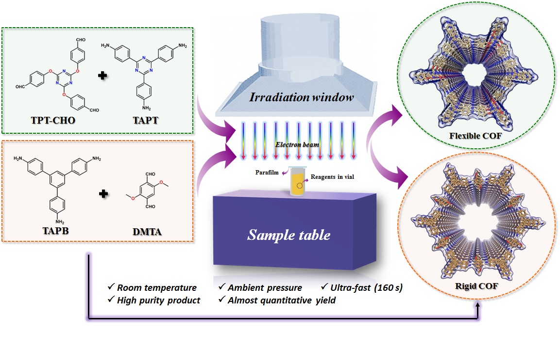 图1电子束辐射合成COFs的示意图