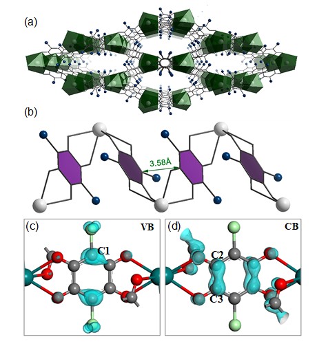 图1. SCU-13的结构示意图以及价带和导带电子模拟图
