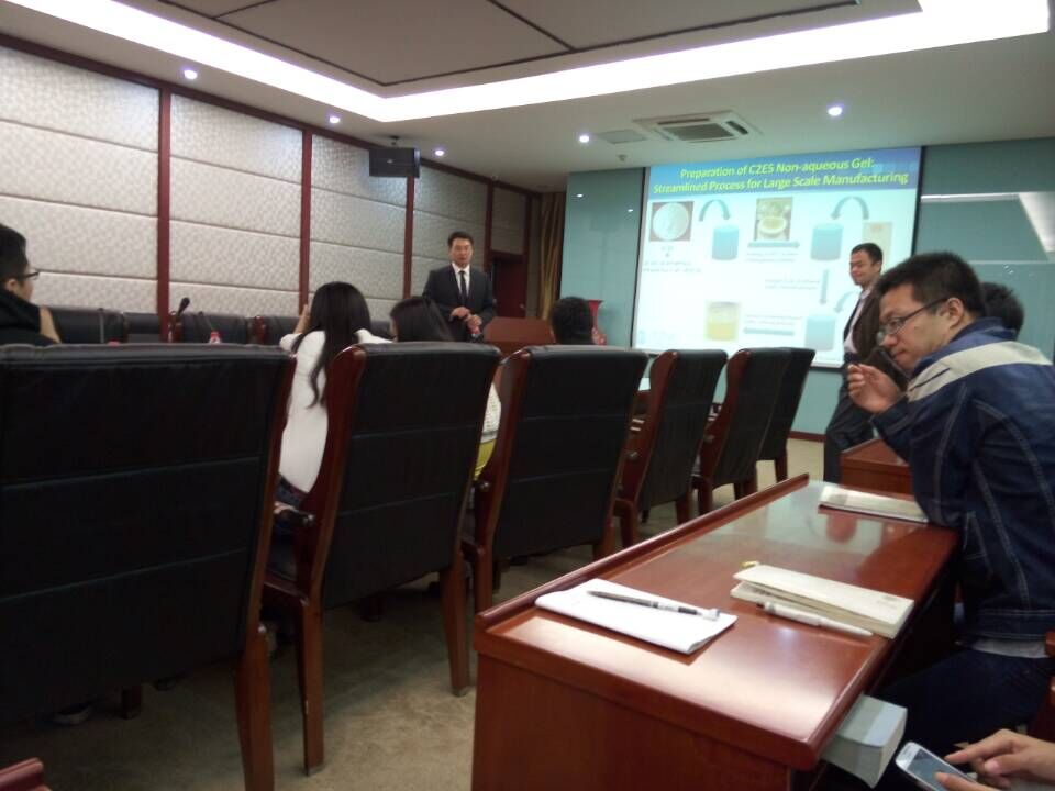 应华道本教授的邀请,美国Novan Therapeutics张勇博士到我中心进行交流访问,做了题为《 DTPA前药的透皮输送:对核恐怖袭击受害者的有效治疗手段》(Transdermal Delivery of a DTPA Prodrug for Effective Treatment of Potential Dirty Bomb Victims)的精彩报告,并与中心老师就促排药物等领域进行了热烈的讨论。