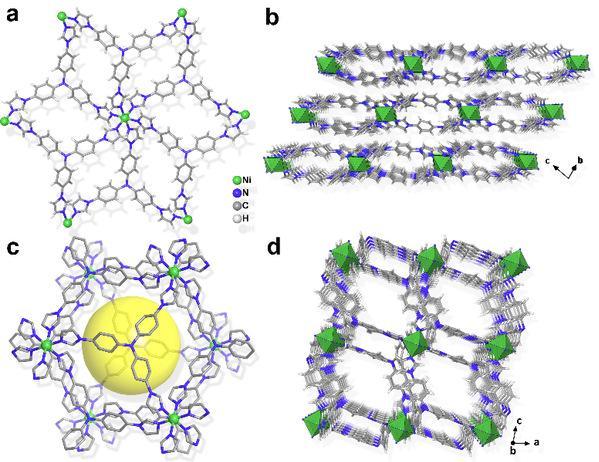 最近,本课题组利用金属中心Ni2+与三齿含氮配体构筑了一例二维阳离子型MOF材料SCU-103,金属中心六配位的构型使得配体将Ni2+包裹限制在褶皱的阳离子层中,有效地避免了溶液中OH−对Ni−N共价键的进攻和与竞争性配位,表现出优异的碱稳定性。吸附实验表明:该材料表现出较快的99TcO4−交换动力学,在5 min内可达到吸附平衡;吸附容量为318±8 mg/g ReO4(99TcO4−的模拟物);SCU-103对99TcO4−具有良好的选择性,在其它阴离子如一价Cl−、ClO4−、NO3−以及高价CO32−、SO42−、PO43−等阴离子存在时,去除率仍保持在98%以上;吸附前后,晶体形貌保持不变,吸附后的材料可用1 M NaNO3洗脱再生;辐照前后,材料的吸附量基本不变。基于其良好的碱稳定性和辐照稳定性,我们与美国Savannah River实验室合作,研究了该材料在真实的萨瓦纳河废液中99TcO4−的去除能力,研究表明,在高碱性(1.88 M OH−)、高离子强度(1.82 M NO3−、0.489 M NO2−、0.240 CO32−)废液体系中,通过提高固液比的方式,SCU-103可将99TcO4−去除率提升到90%。