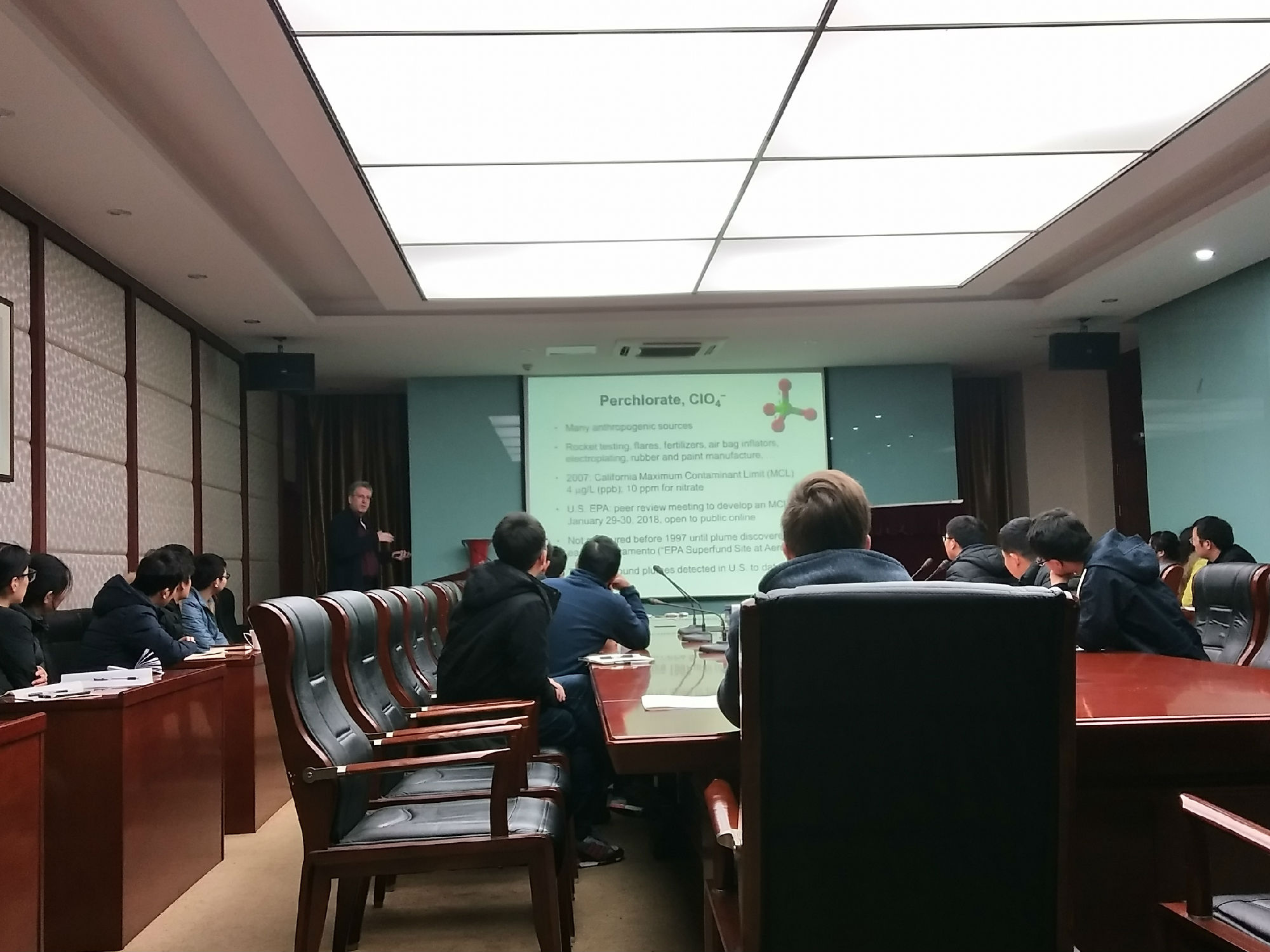 Scott R. J. Oliver教授长期致力于将阳离子骨架材料应用于阴离子去除方面的研究工作,并取得了瞩目的成就,相关的科研成果发表在Nature、Science、Adv. Mater.、J. Am. Chem. Soc.、Chem. Mater.等顶尖学术期刊。本次报告中,Scott R. J. Oliver教授介绍了近年利用无机阳离子骨架材料和阳离子MOFs材料去除阴离子污染物方面的研究进展,同时提出了阳离子骨架材料相关设计理念。Scott R. J. Oliver教授的报告引起了师生的强烈兴趣,大家就报告内容展开了热烈的讨论。