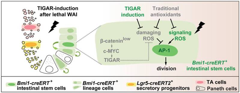图1、TIGAR促进受照肠隐窝静止期干细胞增殖的机制